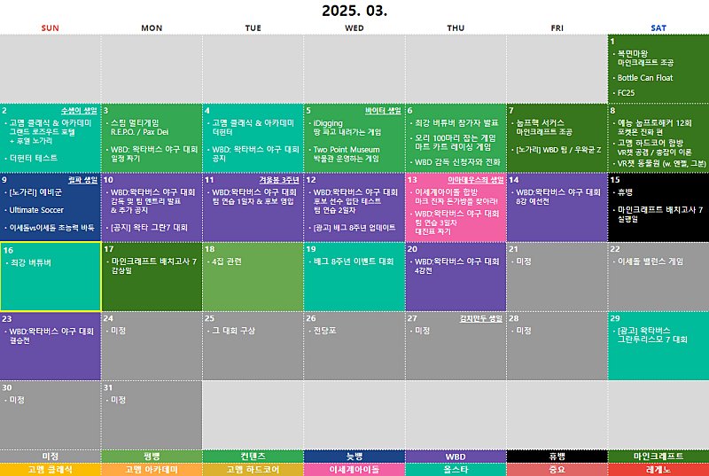 아래에 작성된 계획표는 변경될 가능성이 아주 높습니다.
