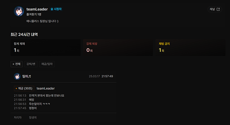 형 어제 애니플러스 팀장님 릴파님 방에서 채금먹은거 봤어??ㅋㅋㅋㅋㅋ