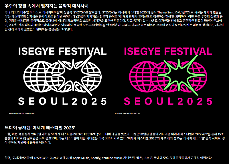 [3.20] 이세계아이돌 ISEGYE FESTIVAL ORIGINAL THEME SONG 'SYZYGY' 발매