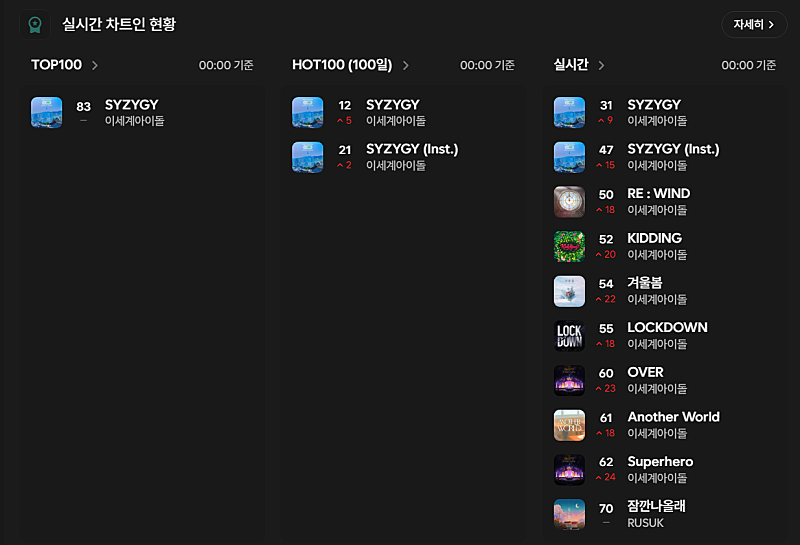[STZYGY] 1일차 멜론 TOP100 83위 / HOT100 12위 마감