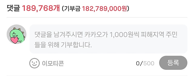 내려서 댓글을 남기면 카카오에서 +1000원 기부를 합니다