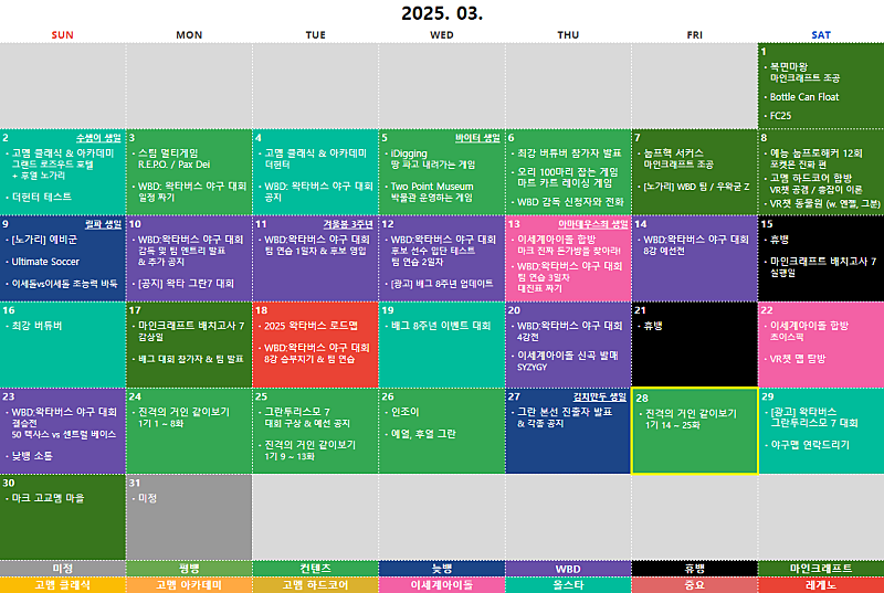 ⑭ 구간단속 ⑮ 2025 염색체 ⑯ 버축대3? ⑰ 고멤드림팀2 ⑱ 복싱 ⑲ 마크 고교멤 마을 ⑳ 상황극 콘테스트