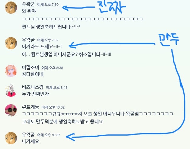 형 만우절에 만두가 형 이름달고 뢴트님한테 생일축하한거 봤어