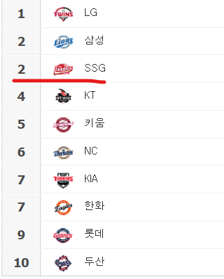 2등인 팀이 2개네요..