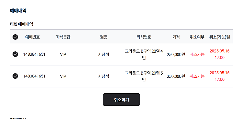 티켓 취소합니다~ VIP B구역