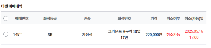 티켓 취소합니다..!! SR H구역