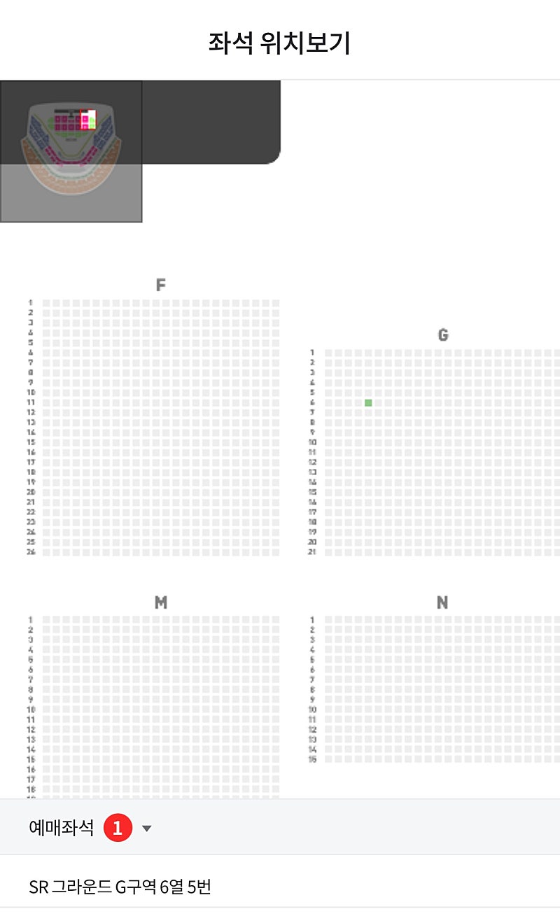 저녁 8시 SR 그라운드 G구역 6열 취소합니다 (취소완료)