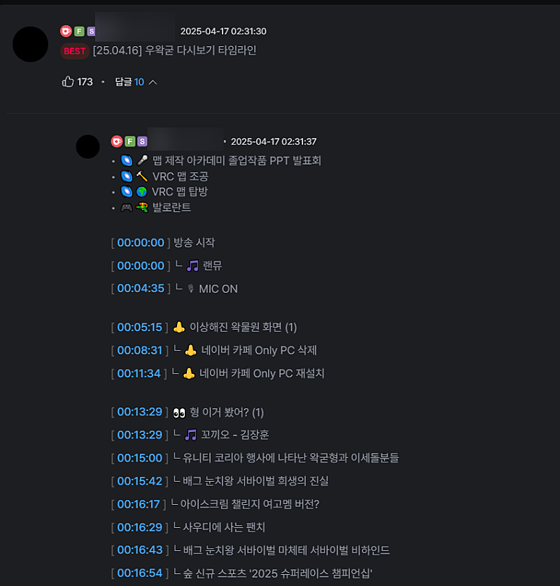 어제자 다시보기 댓글의 타임라인이 계속 삭제되면서 댓글이 자꾸 지워지는 현상이 발생함