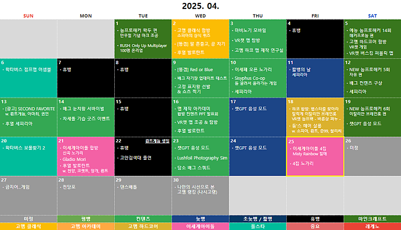 2025년 컨텐츠 ① 체인지 (고멤 아바타 서로 바꾸고 그 사람인것처럼 지내기. 주변에서도 받아주기) ② VR챗 왁굳에게 선물을 보내라 (모델링