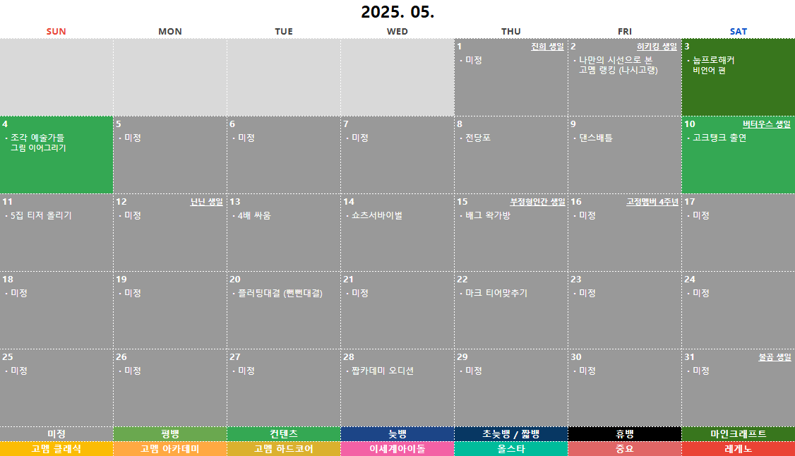 본 일기장은 단순 참고용이며, 추후 진행하는 방송 일정과 다소 차이가 있을 수 있습니다.