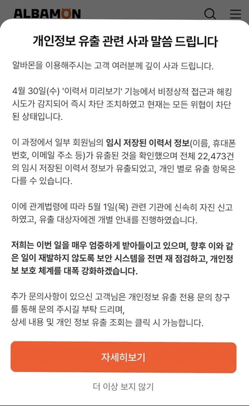 제 정보 유출 됐다고 문자랑 이메일로 왔더라구요..