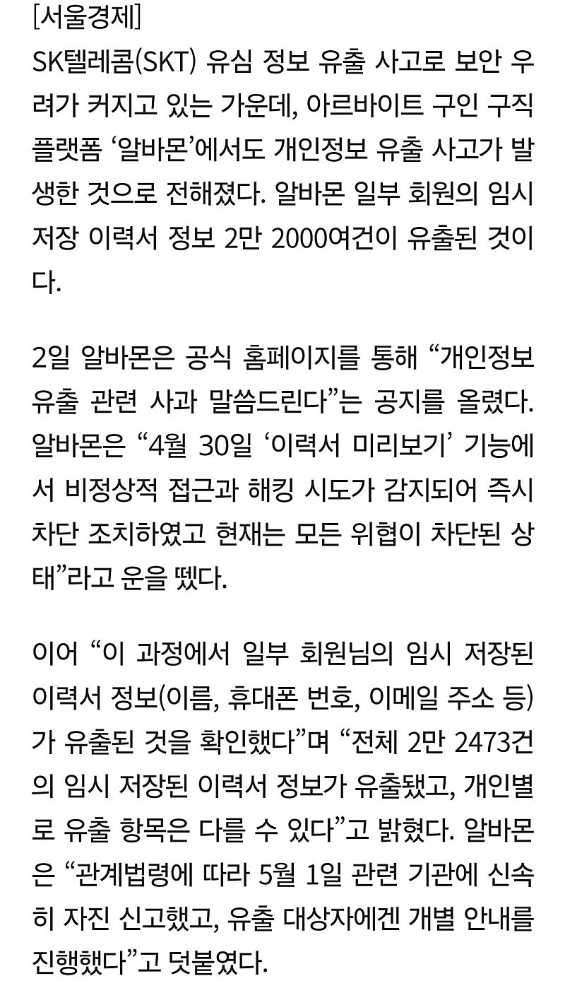 다른 통신사나 사이트도 미리 보안 강화해뒀으면 좋겠네요.