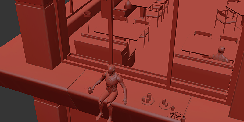 기본적인 모든 프랍 및 구조물, 건물 모델링을 차근차근 진행 하였습니다.