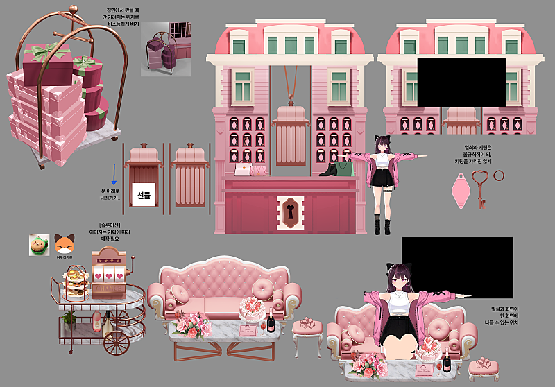 문을 없앨까도 고민했고... 양쪽 사이드에 넣을지...르르님을 쪽으로 배치할지...등등...