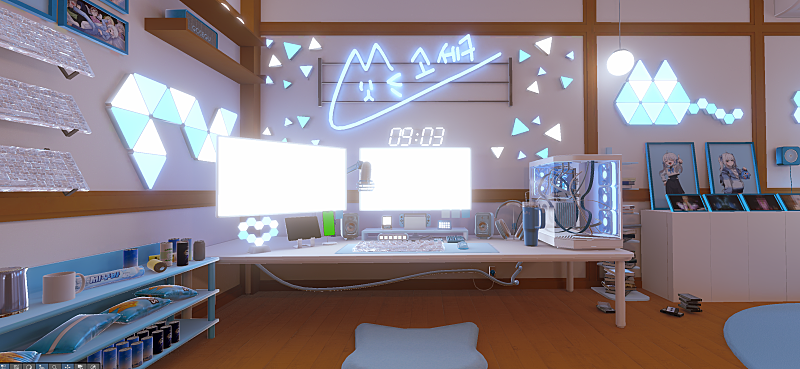 시골감성 방에 최신식 장비가 들어간 느낌으로