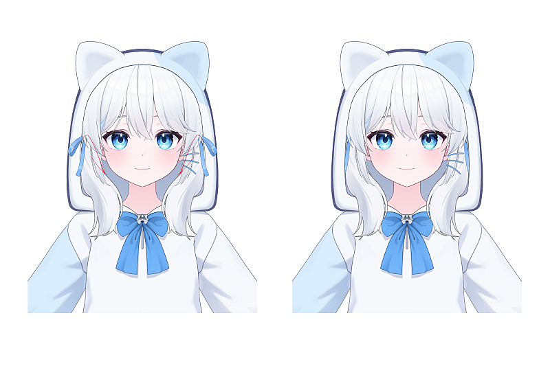 의상과는 별개지만 양갈래의 위치도 조정하고 머리숱도 조금 더 가볍게 줄였습니다