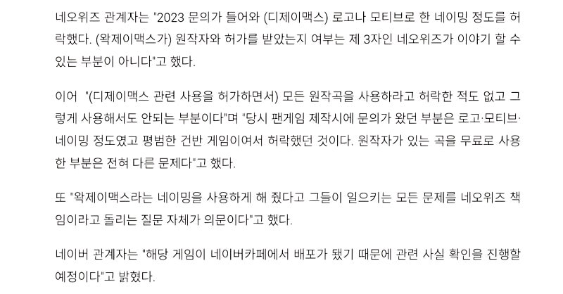 네오위즈는 책임이 없을것 같은게