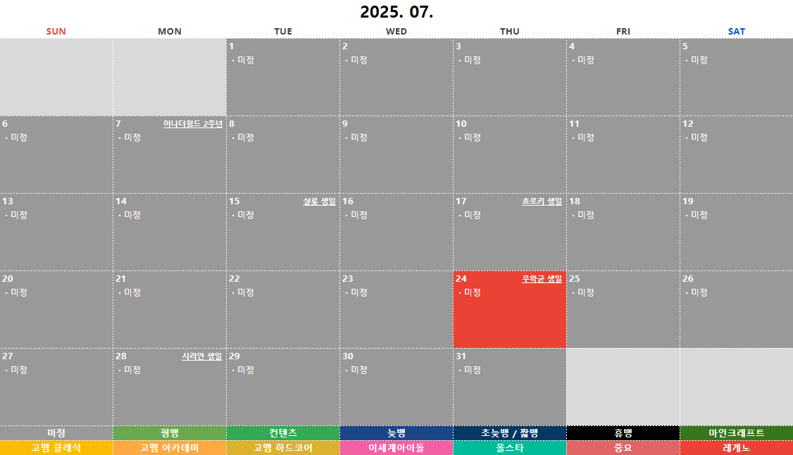 본 일기장은 단순 참고용이며, 추후 진행하는 방송 일정과 다소 차이가 있을 수 있습니다.
