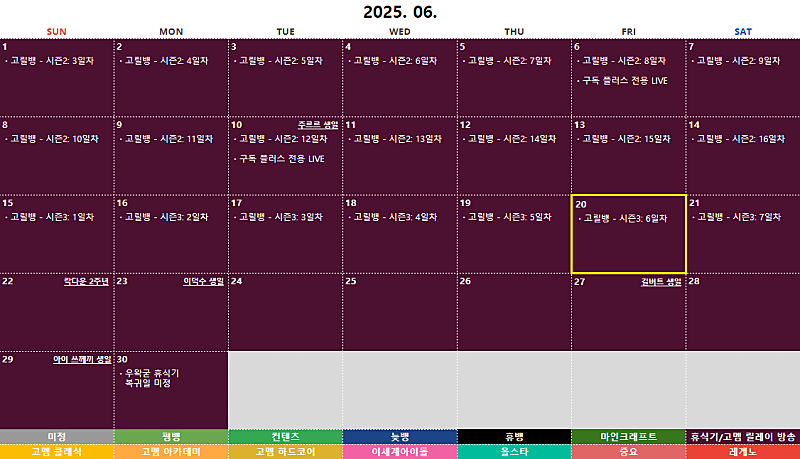 오늘의 방송은? 2025년 06월 21일 토요일 :: [고멤 뱅온 예정] 고멤 릴레이 방송 - 시즌3: 7일차 (방송 시간표) | |||