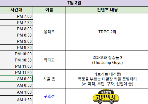 [7.3] 고릴뱅 시간표