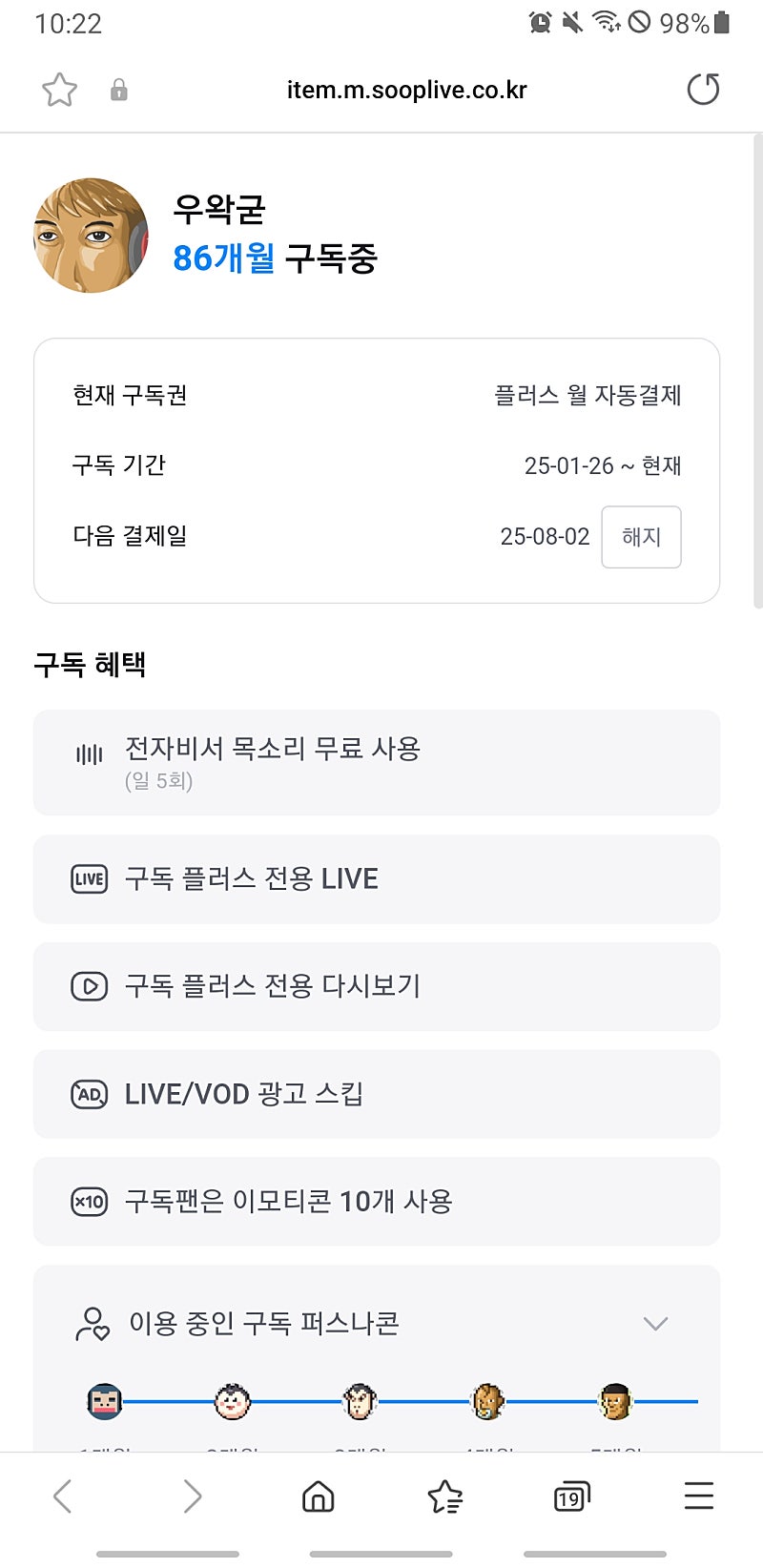 왁두쉑 구독 해지함