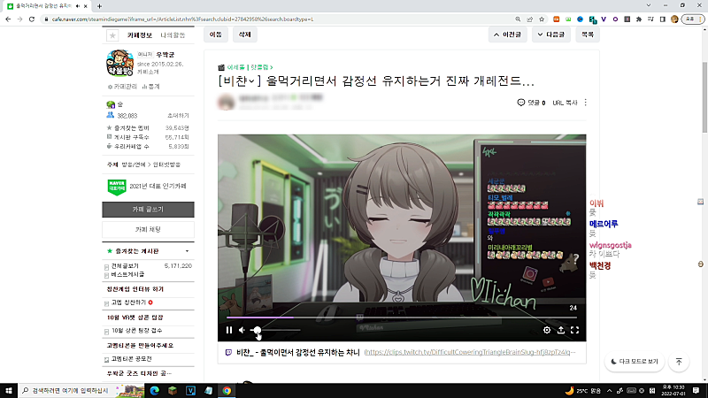 한 스물 여덟부터 제 방송에서 틀딱이 밈이 됐어요 약간.