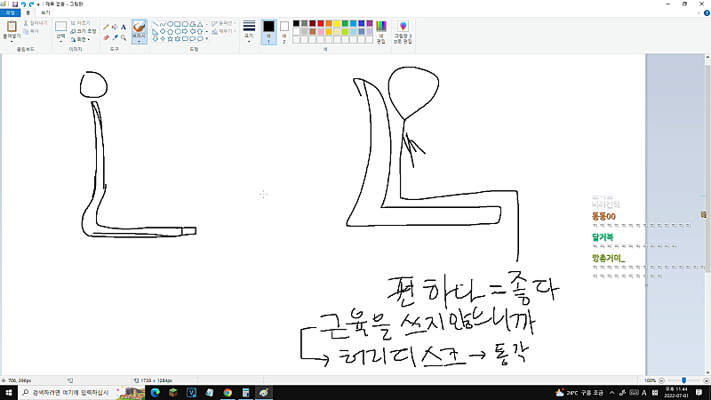 편하다= 좋다. 편하다? 왜 편할까. 근육을 쓰지 않으니까.