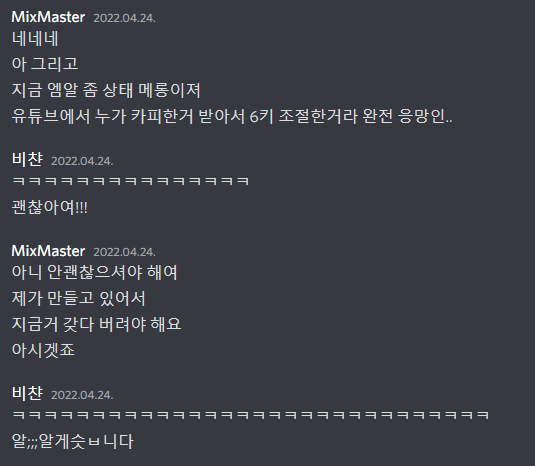 (비챤님은 보컬 디렉터 겸 음원쪽 대장까지 맡아서 하게 되셨습니다)