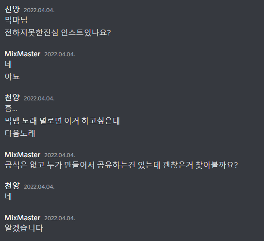 저는 미팅때 음원대장이신 비챤님에게
