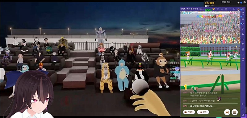 ㄴ다음 경기 1착 / (1착포즈 흉내) 🎀: 닮지 않았나요? / 🦊: ?