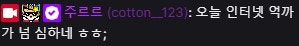 ㄴ인터넷 이슈. 방송 2차 끊김 / 🎀: 오늘 인터넷이 안좋네요..