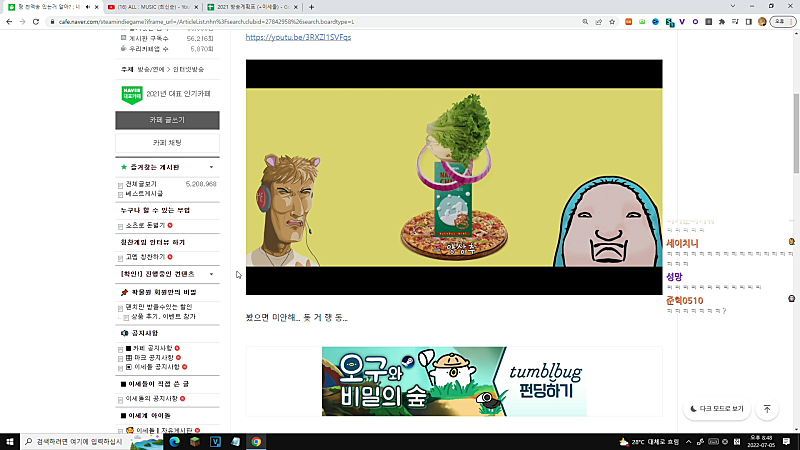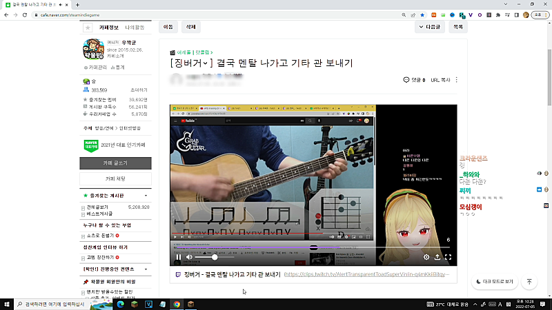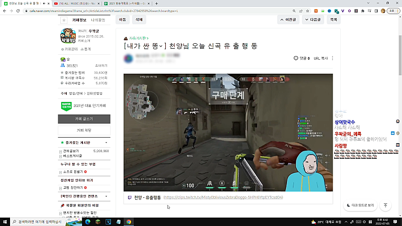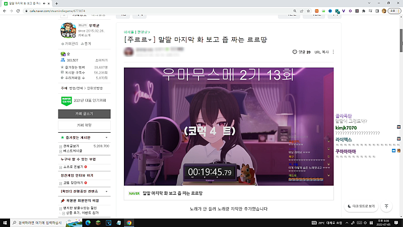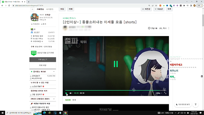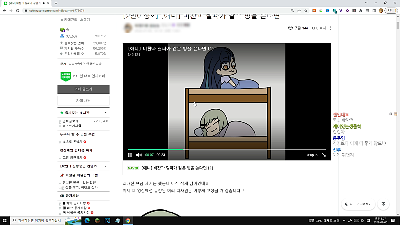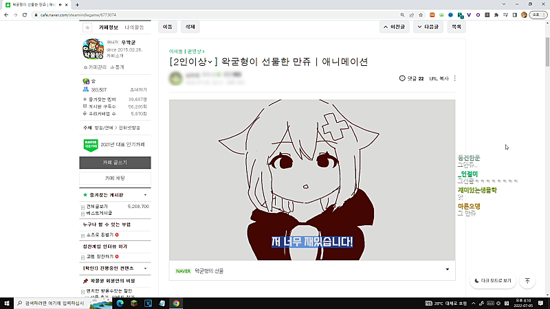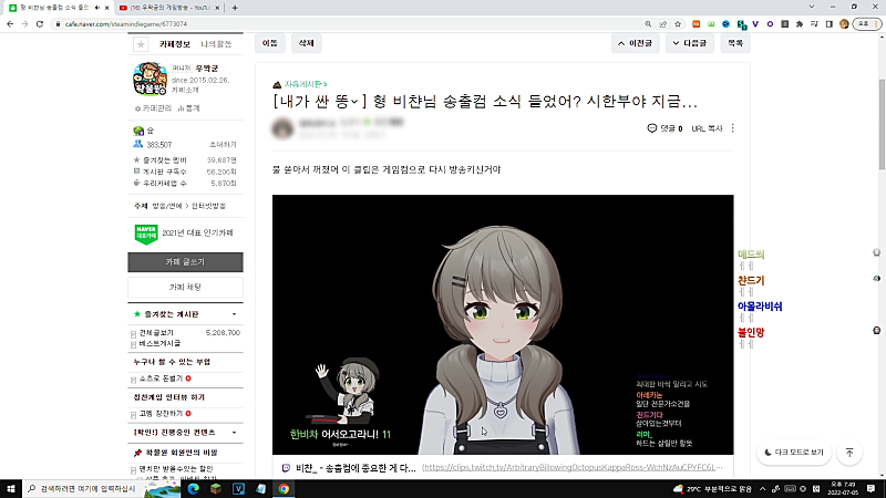 뭐여. 왜. 비챤님 물쏟아서 컴퓨터 꺼졌어?
