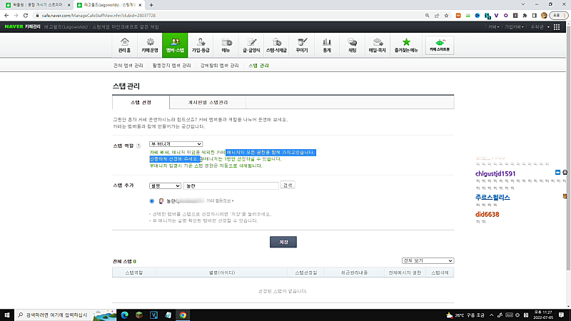 04:28:20 ▶ 레고공지굳 : 3회 경고 후 강퇴시스템