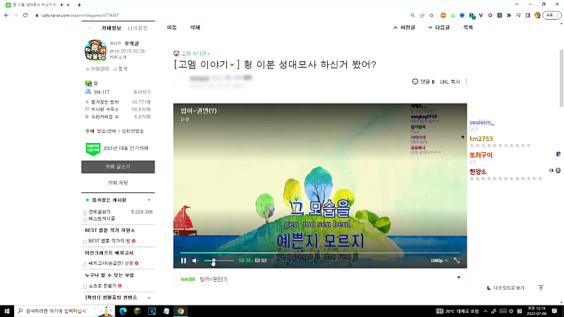 04:29:50 ~ 04:31:50 ▶ 짧가리 : 오늘 합방 후기 2
