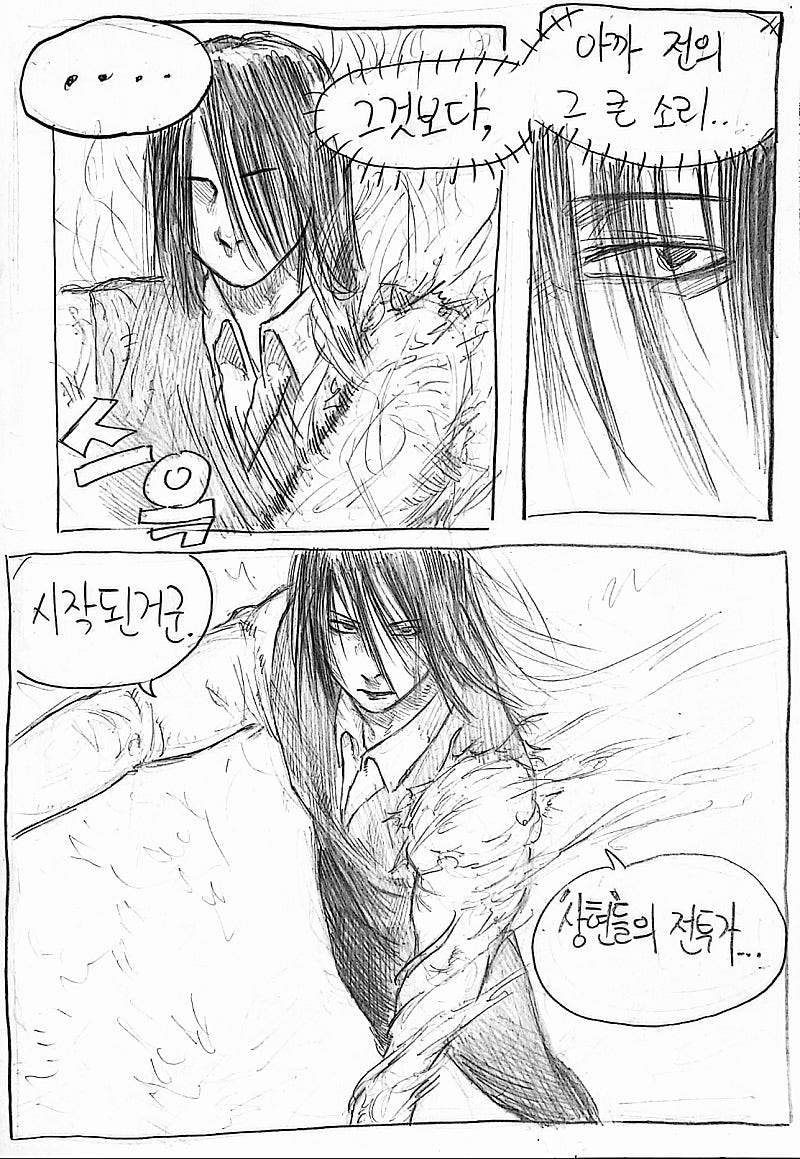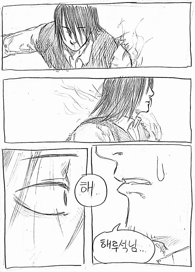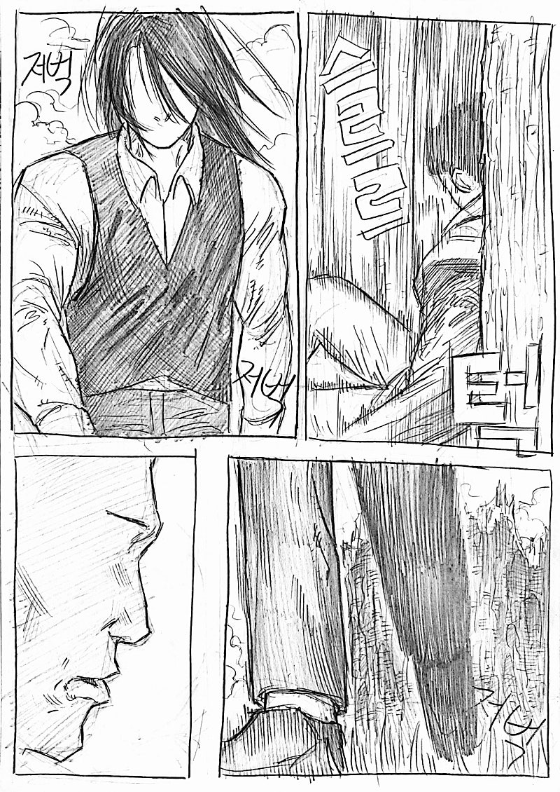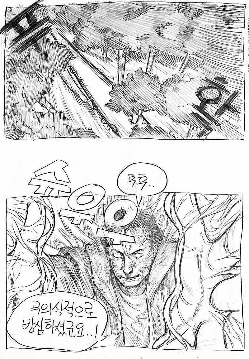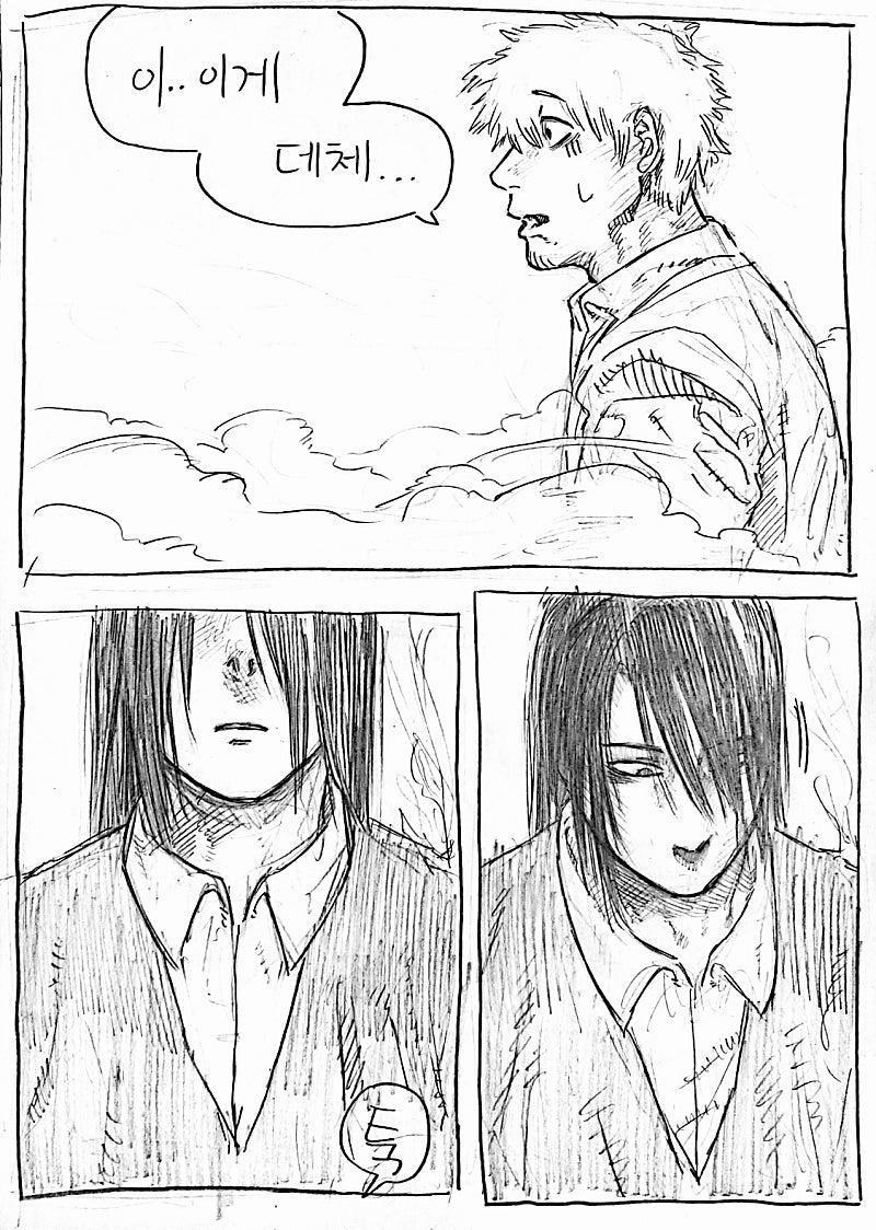이번화는 지난화랑 다른 방법으로 원고를 스캔해봤습니다.연필 느낌이 사라져서 퀄리티는 좀 떨어지지만 그만큼 가독성이 올라가서 앞으로 이 방식으로 만화를 올릴 예정이에요!