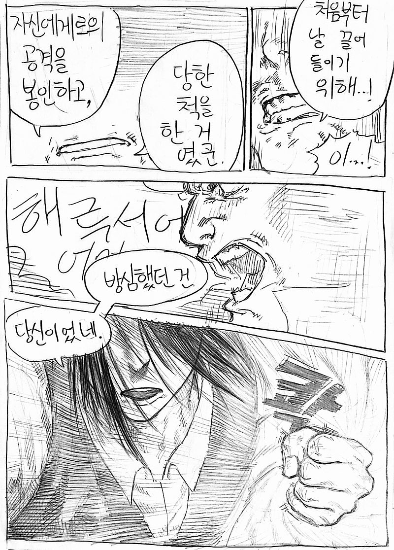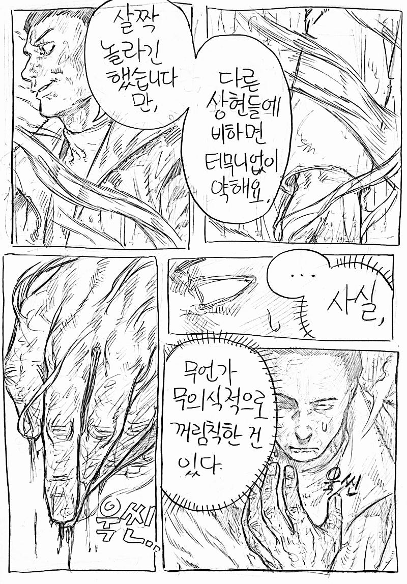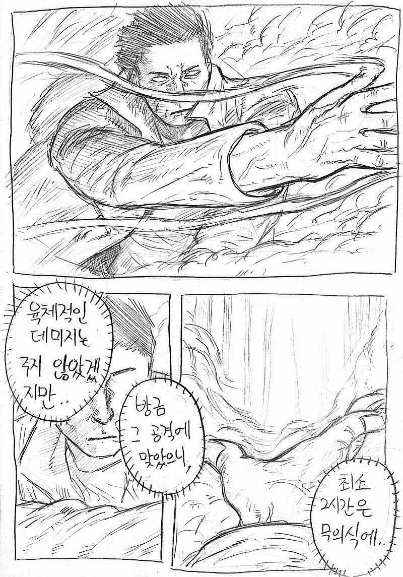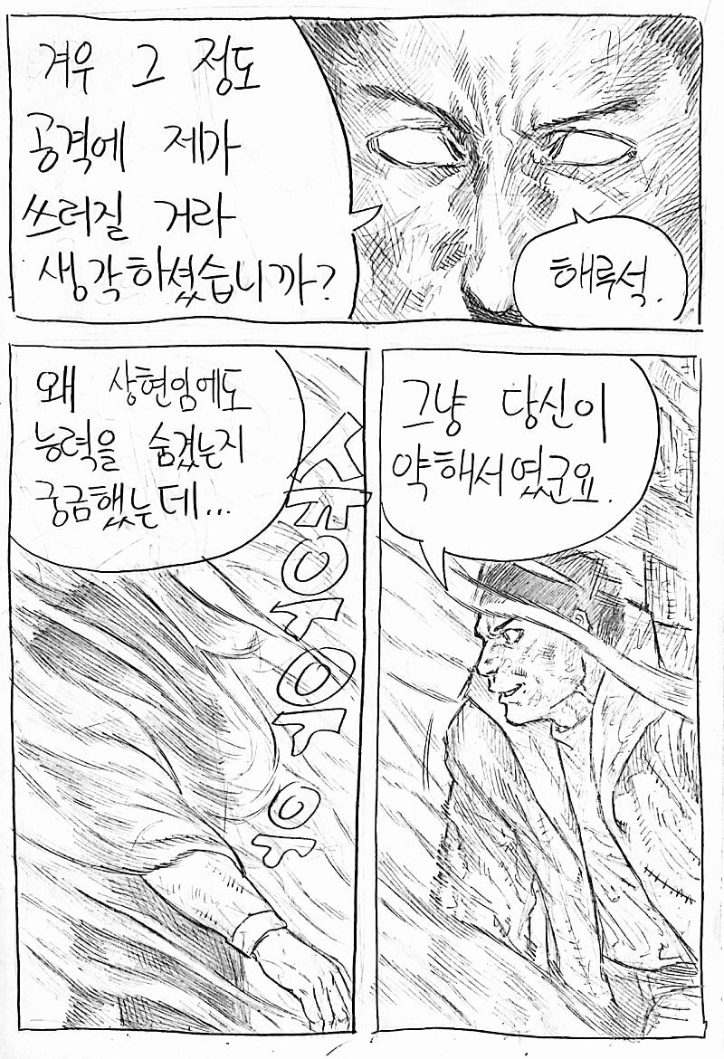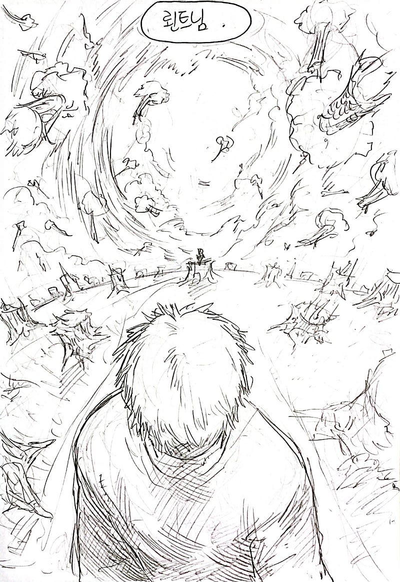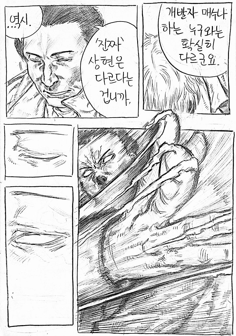 이번화는 지난화랑 다른 방법으로 원고를 스캔해봤습니다.연필 느낌이 사라져서 퀄리티는 좀 떨어지지만 그만큼 가독성이 올라가서 앞으로 이 방식으로 만화를 올릴 예정이에요!