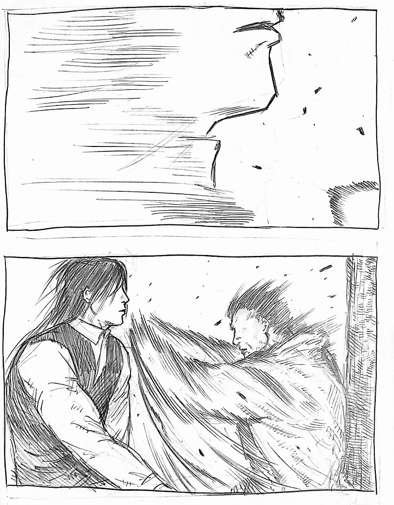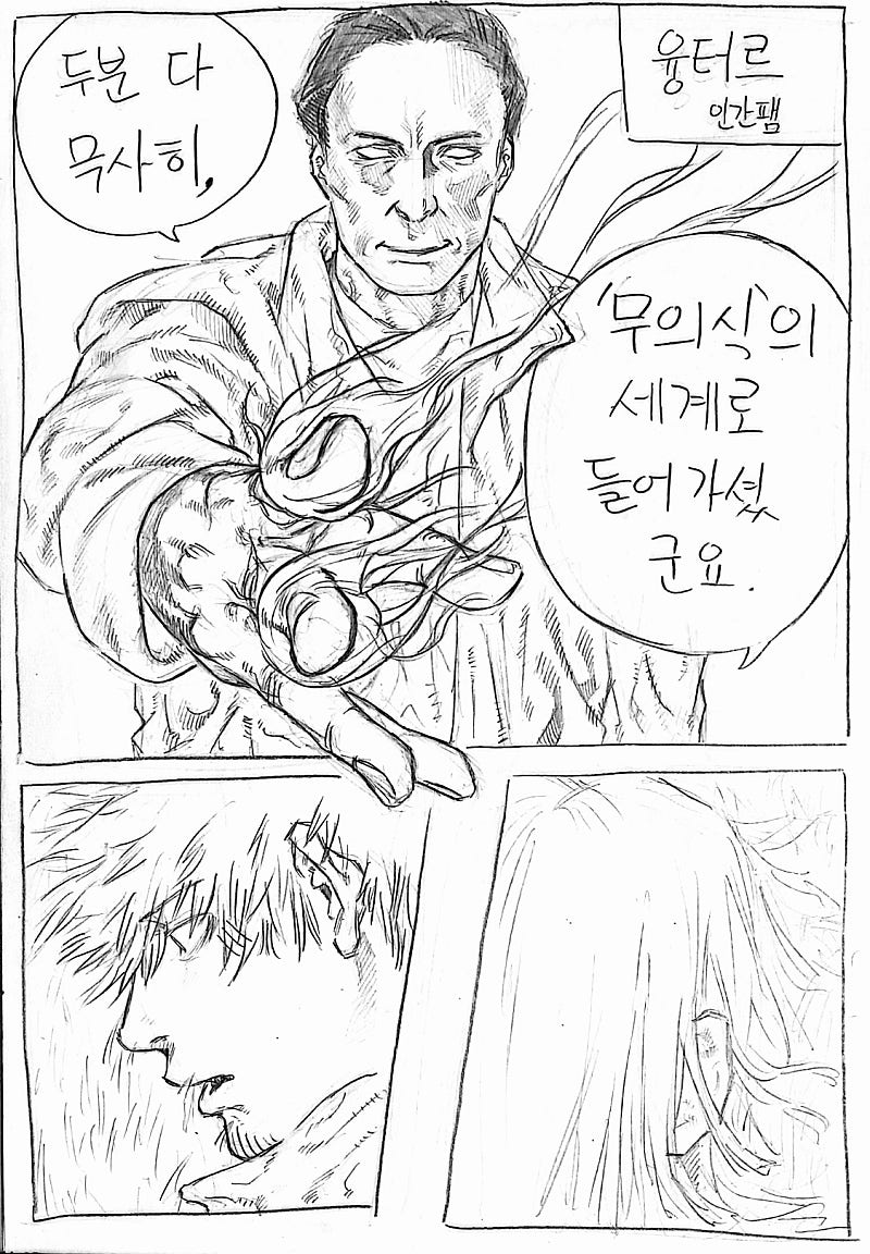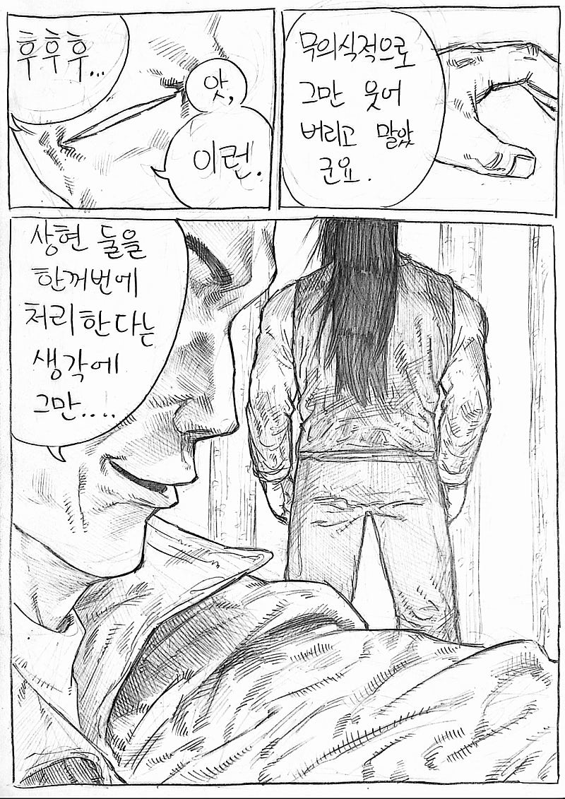 원래는 조금만 그리고 끝내려했던 씬인데 그리다보니 재미있어서 길게 그려버렸네요