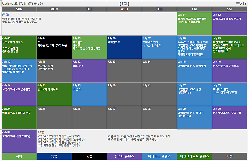 WAXBY | 고멤가요제 맵 사전점검 / VRC 헤비 리소스 캐치 / ecvhao@naver.com / 내가 직접 그려서 넷님 판매량 따라잡기 프로젝트 민치티콘 5일차 / 아기형 스트리머 432개월 / 노가리 매트리스 허리디스크 의자 자세 허먼밀러