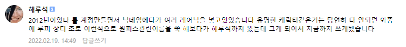 12. 해루석 이름의 유래는 원피스 해루석이다.
