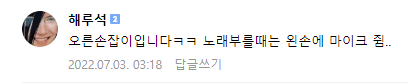 33. 해루석은 가수 데뷔를 했다