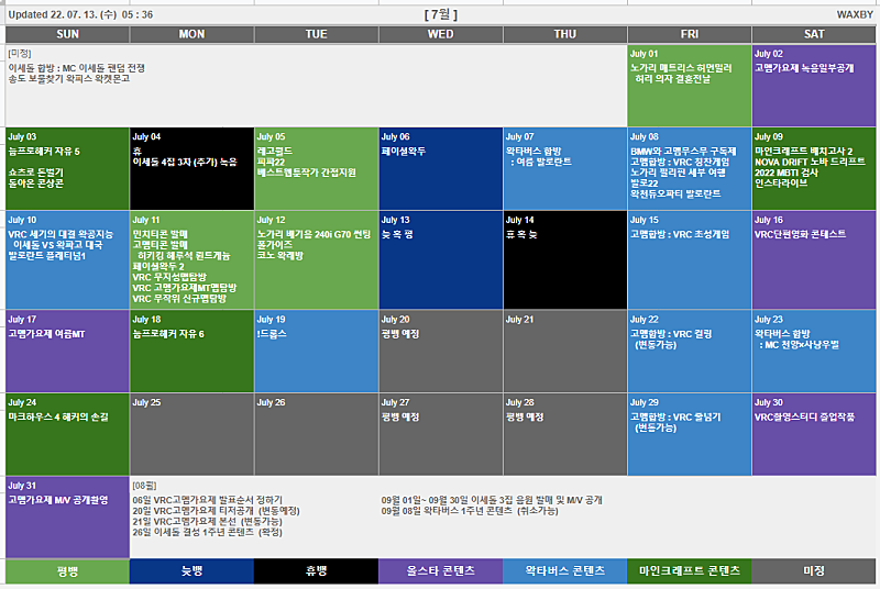 WAXBY | WAKTAVERSE VALORANT CIVILWAR SUMMER SEASON 왁타버스 합방 여름 발로란트 내전 / 뺏어서 그대로 파는 DesktopCal / WAKLORANT 오버뷰 / 고멤무스메 / 우왁굳 굿즈 티셔츠 행택 라벨 공모전 검토 / 배치고사 2 승급전 신청자 접수 및 서류심사 / 짧가리 유튜브 조회수와 수익 앵무새들 / 노가리 오영택의 경제관념 / 노가리 커피머신 / 피파22