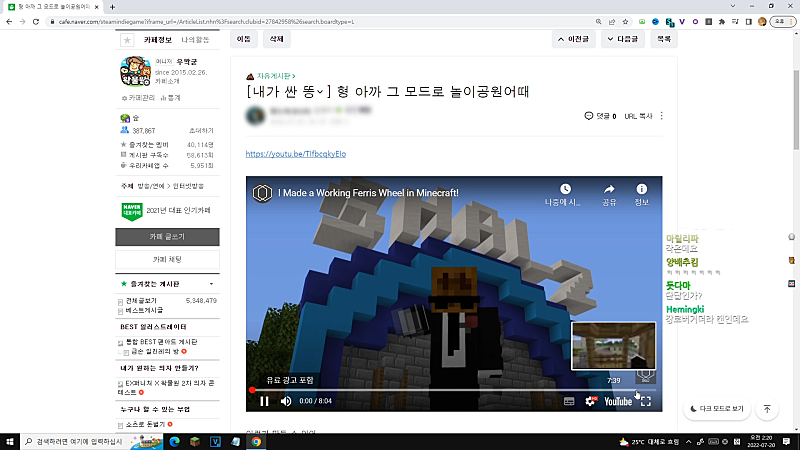 03:37:50 ▶ 마인크래프트 놀이동산 만들기 프로젝트