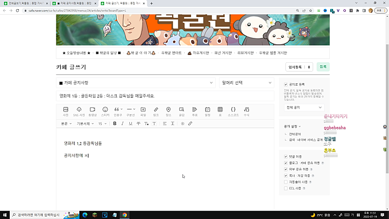 오려보셍요 여러분들