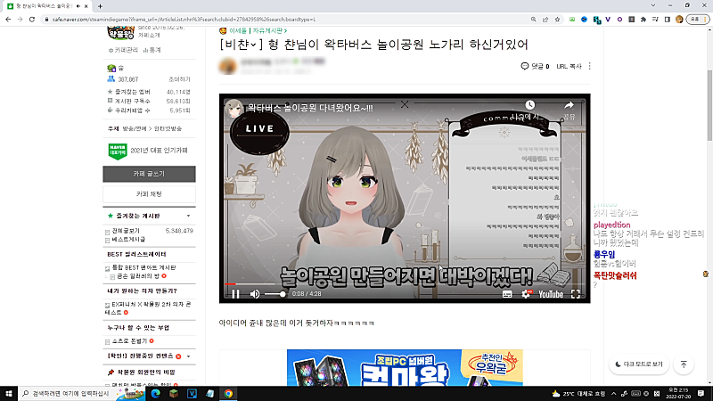이 분 옛날에 다음팟에서 방송하셨었는데. 개 꾸준히 하시네.