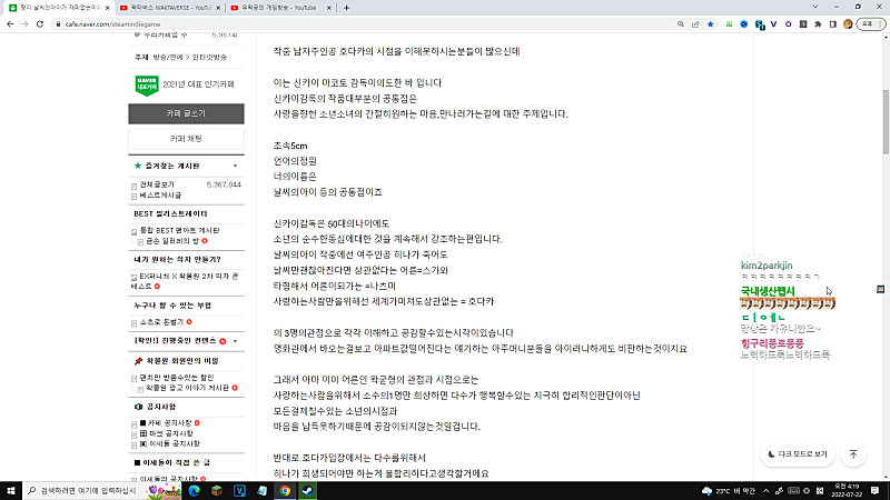 06:57:05 ~ 07:02:05 ▶ 방송 중 개빡치는 요소
