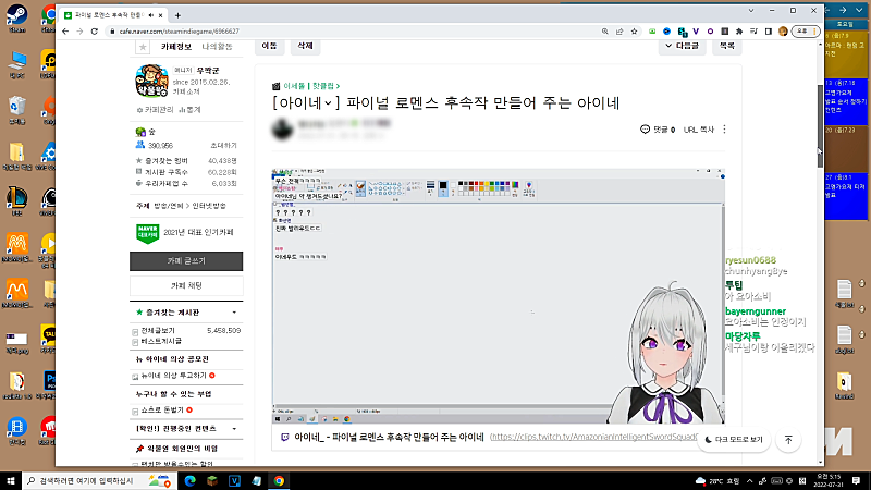 아이네님 근데 뭐가 마음에 들어하세요 지금