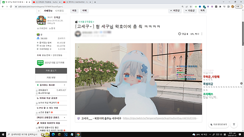 08:04:40 ▶ 고세구 클립 : 왁굳님.. 그렇게까지 굳이.. 소속아이돌을.. 커버안해주셔도..
