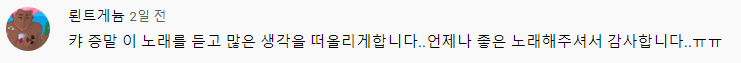 후열로는 새로운 아바타에 대한 약간의 노가리, 최근 진행된 케이크 이벤트에 대한 노가리, 모자 가리, 예전을 떠올리며 풀어보는 홍머가리 등등 예열에 결코 꿇리지 않는 알찬 노가리가 이어졌답니다. 그리고 이어서 새로운 아바타와 함께하는 노래뱅까지...! 다양한 노래가 있었지만 그 중에서도 저의 취향을 골라담아 봤습니다. 노가리-숙제-노래가 완벽한 균형을 이뤘던 오늘 방송은 여기까지! 다들 안녕~