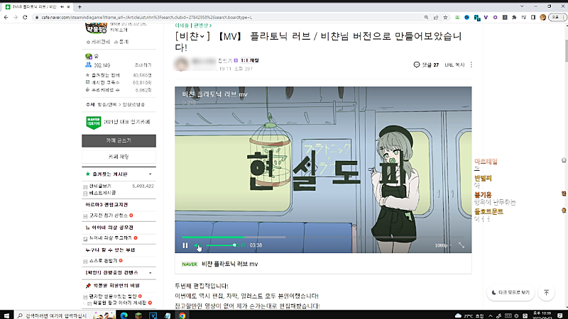 너무 잘하긴 했는데 유튜브 볼 때 사람들이