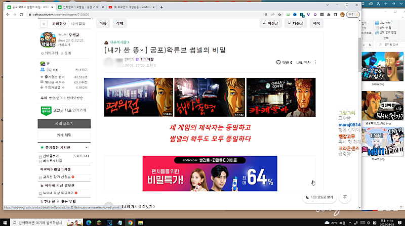 이거가 진짜 잘한 썸네일이야 봐봐 나왔잖아